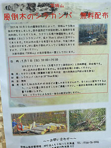 主催の「突哨山と身近な自然を考える会」は,突哨山のゴルフ場開発計画の白紙撤回を求めて1991年に結成,署名活動などを経て2000年に突哨山の大部分を旭川市と比布町が購入するに至っている。この広場も会の手作りで設置されたものだという。