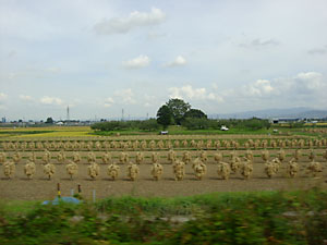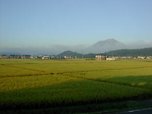 水田は刈り取りの時期で,日本的な風景が見られた。北海道の水田とは違う風景だ。弘前のあたりではりんごも色づきはじめていた。