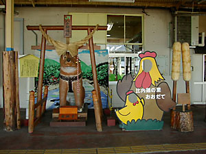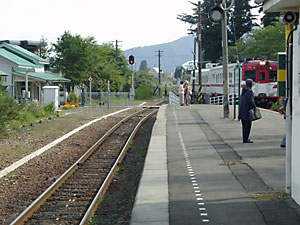 駅前は情緒あるように見えるが,窓口は閉鎖されている。花輪線も自動閉塞化によって駅の無人化が進んでいる。前回訪問したときにはまだまだ駅務室に明かりがついていたのだが。