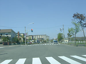 森林公園南端を走るこの道はいちおう舗装されているがセンターラインはない。札幌と南幌,北広島方面を結ぶ裏道として交通量は多い。