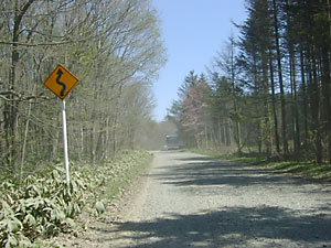 野幌森林公園には自動車で通行できる横断道路が2本ある。道立自然公園内を走るため整備されることなく細い道のまま残っている。