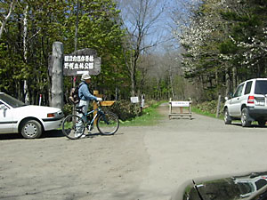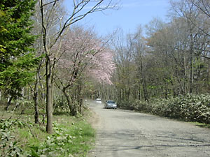 桜も良い感じ。行楽日和なので交通量が多いが,平日は通勤の車も多いという。札幌まで砂利道で通勤するというのもすごい話だ。