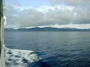 利尻富士が見えた。エサをねだりにゴメさんがやってくる。いよいよ島へ渡るんだという実感が沸いてくる。