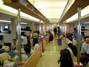フェリーの客層は礼文のときと対照的だった。礼文の場合は若い人も年配の人もアウトドアスタイルで,いかにも旅人という感じの人が多かった。対して今日はいかにも物見遊山という感じの人が多い。今の時期だと旅の人は学生と年寄りに2極分化しており,家族連れは皆無だが,今日は年寄りが圧倒的に多い。礼文のときはユースホステル系の若い人がけっこういた。