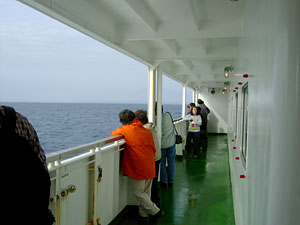 2等船室は既に満員だったので,今日も甲板の椅子席に座ることにした。