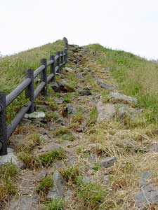 登山道がすごいことになっていた。もとは石積みの階段だったのかもしれないが,ガタガタに崩れて危険な状態だ。