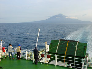 | 雄大な利尻水道を眼前に稚内と礼文を一望にする。 | 国立公園利尻島の碑。利尻礼文は昭和25年に道立自然公園,同40年国定公園,同49年に国立公園に指定された。昭和45年にはカーフェリーが就航し,一気に離島ブームが訪れた。 |