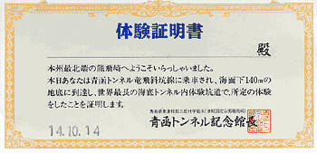 記念館内部。展示室は実物大の青函トンネルを模しており,ビジュアルな展示になっている。北海道側の福島町にも記念館があって,そちらのほうが展示内容は良かったのだが,入場者減のためこの10月で閉鎖されてしまった。