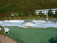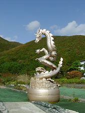| プールの真ん中には噴水と天子様 | プールサイドには龍 |