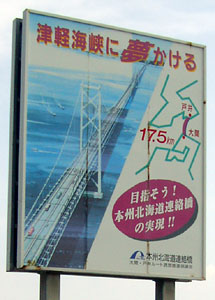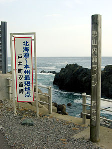 | 北海道〜本州最短地点は駐車場もなく,簡単な看板があるのみ。 | |