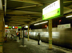さすが北海道,寒さが違う。ホームの待合室のガラスにふっと息を吹きかけると瞬く間に白く凍りついた。