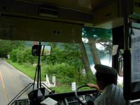 鶴の湯温泉旧道口。運転士さんが心配そうにこちらを見ている。