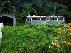 運転士さんによれば昭和30年にはこの川筋に4800人もの人が住んでいたという。それが平成12年の国勢調査では1000人に減少したのだとか。数字はわたしのうろ覚えなので確かではないが,こうした数字がすらすらと出てくるあたり,運転士さんはかなり教養のありそうな方である。いろいろなことを知っていそうだったが,運転中に話しかけるのは迷惑かと思い,ただ運転士さんが話してくれるのを聞くだけで,わたしのほうから何かを尋ねるということはしなかった。わたしは必要以上に遠慮深いところがあり,このことでいままでずいぶん損をしてきていると思う。