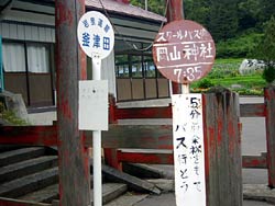 「次は釜津田です」の放送がかかったので,降車ボタンを押す。運転士さんはわたしが終点まで行くものと思っていたようだ。「終点まで行かないで,ここで降りて神社でも見てきます」と告げて降りる。
