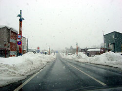 綺羅街道(きらかいどう)ニセコ本通中心街。道路拡幅,電線の地中化が実施され,たしかに様変わりしてはいるが,立派な街並みとは言いがたい。