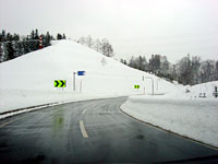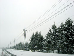 道道257号留寿都喜茂別線を北上する。道路沿いの電線だが,下の3本が留寿都市街に供給する分で,上の3本がルスツリゾートに供給する分。上の3本のほうが高圧で引かれている。留寿都村の人口2200人に対して,ルスツリゾートの収容人数は4000人,それに遊園地やリフト・ゴンドラもあるのだから電気を食うわけだ。