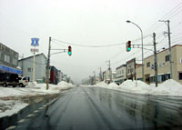 国道230号留寿都市街。留寿都村は人口約2200人。セブンイレブン,ローソン,セイコーマートがあって,人口当たりのコンビニの店舗数は道内トップクラスだろう。これはこの国道230号が札幌と函館を結ぶ幹線であり,留寿都から先の函館方面はしばらく町がないためだ。