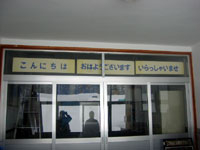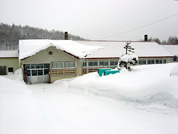 玄関に掲げてあった標語「こんにちは」「おはようございます」「いらっしゃいませ」。学校で「いらっしゃいませ」とは何だ。ルスツリゾートが近いだけに子供のときから徹底的に接客精神をたたき込んでいるのだろうか。たしかに,この辺りの農家の人たちもルスツリゾートと無縁ではなく,農閑期にはアルバイトやパートで雇われている人も多いと思われる。ルスツリゾートで働く人は700〜800人を数えるという。この数字は人口2,3千の周辺町村にとってはかなり大きい。