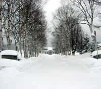 岩崎かよは故あって幼子「きみ」を見も知らない外国人に託して留寿都へ開拓に入った。役場の隣にある赤い靴公園はルスツリゾートを除けば村唯一の観光地だが,除雪されておらず「きみちゃん」の像には到達できなかった。