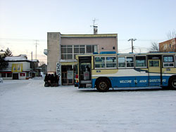 バスセンター内に阿寒パノラマコースの時刻表が掲示されていたが,もう何十年も前から変わっていない感じだ。ほんとうに髪の毛一本で世界的観光地を結んでいるバスなので,何とか今後も走り続けて欲しいものだ。