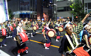既に交通規制のかかった県庁前通を小走りに行く。向こうからは太鼓の音が聴こえてくる。