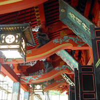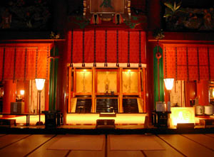 これは好都合。団体客に混じってガイドさんの説明を聞かせてもらおうと思ったが,ガイドさんは「はーい,これが出羽三山神社でーす。三つの神社を祭っているので,額が三つありまーす。」と極めてやる気なし。団体客も障子を開けようともせず,パンパンと手を叩いてちょこんと頭を下げてそそくさと出て行く。