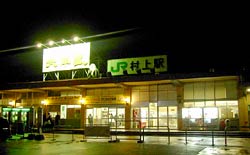 村上駅到着。35分の待ち合わせで折り返しムーンライトえちごが発車する。
