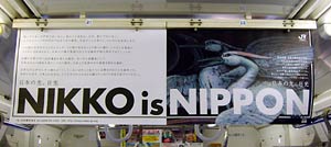 中吊り広告。日光は日本。たしかに日光を見ずして日本を語ることはできないのかもしれない。