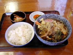 お品書きには「ゆばそば」の文字も見えたが,ここはあえて他のものを頼むのが通人と思い,天ぷらそばセット(1300)円にした。そばは打ちたてのものを茹でてくれたし,天ぷらや漬物もおいしかった。
