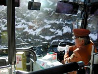 ここ始発のバスなので,いちばん前の席に座ることができた。さあいよいよ第一いろは坂だ。