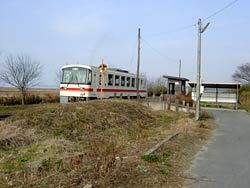鹿島鉄道の車窓は前半はのどかな田園地帯で,後半は起伏のある牧場だった。