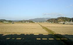 清々しい田園。あぜ道を犬と散歩している人の姿もちらほら見られた。