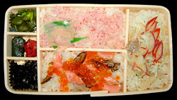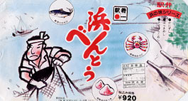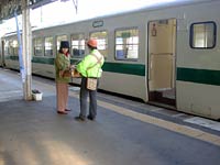 原ノ町にて21分の停車。ホームでは駅弁の立ち売りがあり,わたしも一つ求めた。元旦からご苦労様。