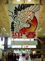 仙台到着。吹き抜けの天井に吊り下げられた巨大な凧が新年を祝福してくれる。