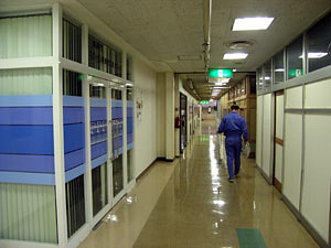 ほとんどが空きテナント。それでも掃除が行き届き,床はぴかぴかに磨かれていた。