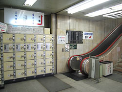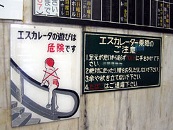 2階へ向かうエスカレーター。傍らには古めかしい注意書きが掲示されていた。この駅舎ができた頃はまだエスカレーター自体が珍しかったのだろう。