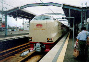 | 特急サンライズ出雲で出雲市に到着。札幌を出てから12時間,駅の外には一歩も出ず,ずっと列車。途中台風で大荒れの中,よく定刻で着けたのは奇跡です。。 | 一畑電鉄,電鉄出雲市駅にて。出雲大社参拝の正式コースです。景色は意外に都会的でした。 |