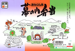 おたのしみ幕の内弁当,700円,2002.3.24購入 ★★★★幕の内の基本をゆく弁当で,しっかりとしたおかずがあり,700円とは思えないほど充実している。値段に対する内容の豊富さは道内でもトップクラスだ。大きなザンギ,食べやすく骨が除かれた鮭,よく味のしみこんだ煮物など,一つ一つのおかずにこだわりが感じられて好ましい。 |