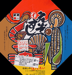 日高路,600円,2001.2.18購入中身は忘れたが,魚の寿司だったと思う。何より名前が良い。包装紙にいまだに富内線が描かれているのもなおよろしい。日高本線に乗るならこの弁当で決まりだ。 |
