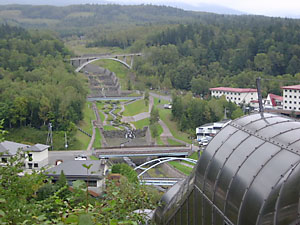 温泉街から階段で上ると近い。昭和63年の十勝岳噴火で白金温泉街は大打撃を受けた。今では砂防ダムや流路工,空中避難路が宇宙都市のような景観をつくっている。このセンターは温泉街を見下ろす高台にあって,火山災害の恐ろしさや防災対策を紹介している。3D劇場や振動付き映写室などがあって,なかなか楽しい。(H7.8訪問)