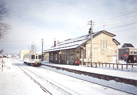 石造りの駅舎が印象的。昭和27年に地元で採れる美瑛軟石を使って建てられたもので,昭和63年にきれいに改装された。
