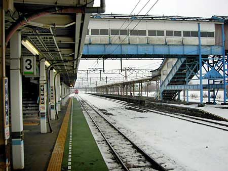 かつての歌志内線と函館本線砂川支線の分岐駅。それぞれ昭和63年4月,平成6年5月に廃止となった。上砂川方面の旧4番ホームに向かう長い跨線橋は今も化石のように残っているが,通行はできない。跨線橋の下にはたくさんの側線があり,歌志内,上砂川からやってきた石炭列車がひしめいていたのだろう。駅舎は1989年に建て替えられ,内部は活気ある。