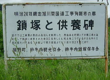 徒歩20分。国道より道道104号網走端野線に入る。北見道路は緋牛内から現在の道道104号網走端野線のルートをとって網走に達していた。鎖塚は緋牛内の住民が中心になって昭和51年に建立。道路開削のために犠牲になった囚人を弔うための地蔵堂にはいつも花が供えられている。観光バスも立寄る名所という。