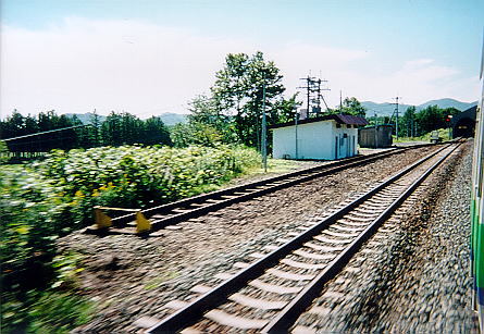 雄大な狩勝峠の眺めもここまで。信号場に着けば木に囲まれ,開放感はなくなる。まだ人の里は遠い感じだ。
