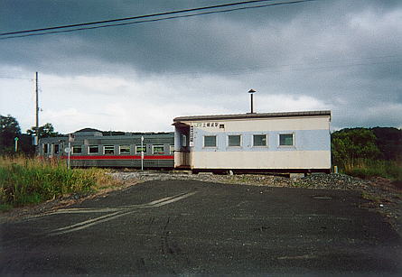 開業当時からの駅だが,貨車駅となり,駅前後の線路のわずかな曲がりにのみ交換駅だった面影を残す。この駅は訪れる人も少ないらしく,待合室の中にも何もない。周辺は牧場で,駅前には小集落があるが,人が住んでいるのは1軒だけのようだ。